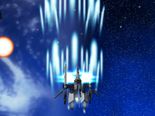 ■ファイター形態での攻撃(ノーマルショット、誘導レーザー)を使用して、敵機を0.6秒以内に連続破壊することにより、コンボボーナスが入ります。